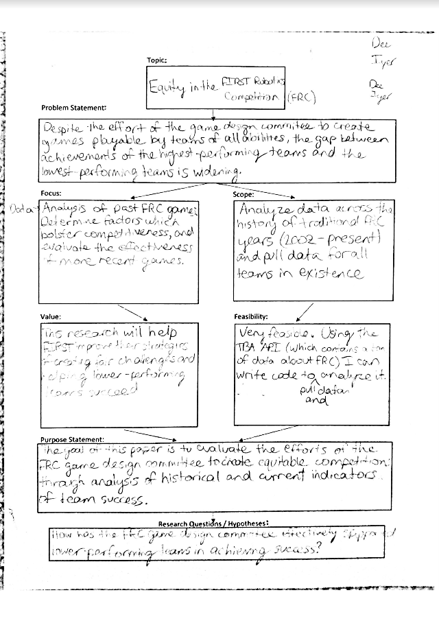First instance where all aspects of my research were organized on paper—from the purpose of this topic to the initial ideas for methodology.